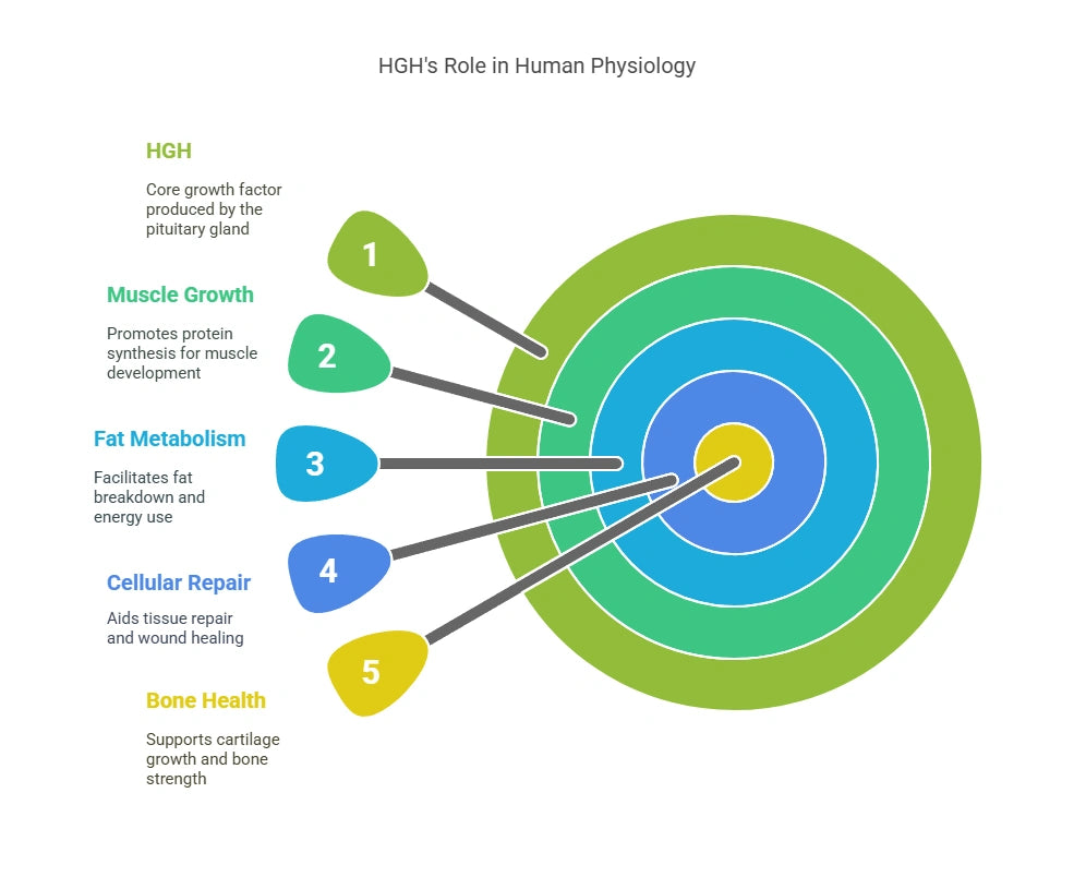 HGH affects many key parts of our bodies that are needed for growth, repair, and keeping our metabolism balanced. Its main jobs are: